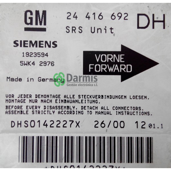 Nº de pieza: 24 416 692 DH
