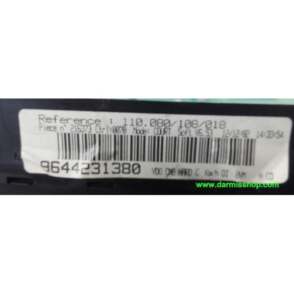 CUADRO DE INSTRUMENTOS, PEUGEOT 406, D9/26K, 110.080/108/018, 110080108018, 96 442 313 80, 9644231380